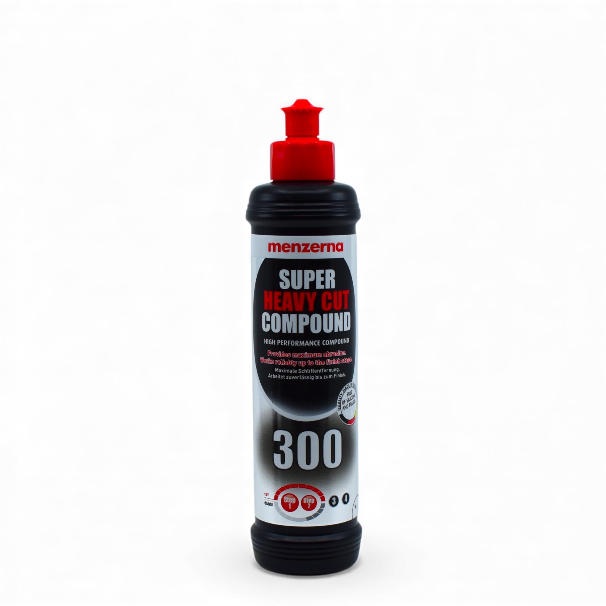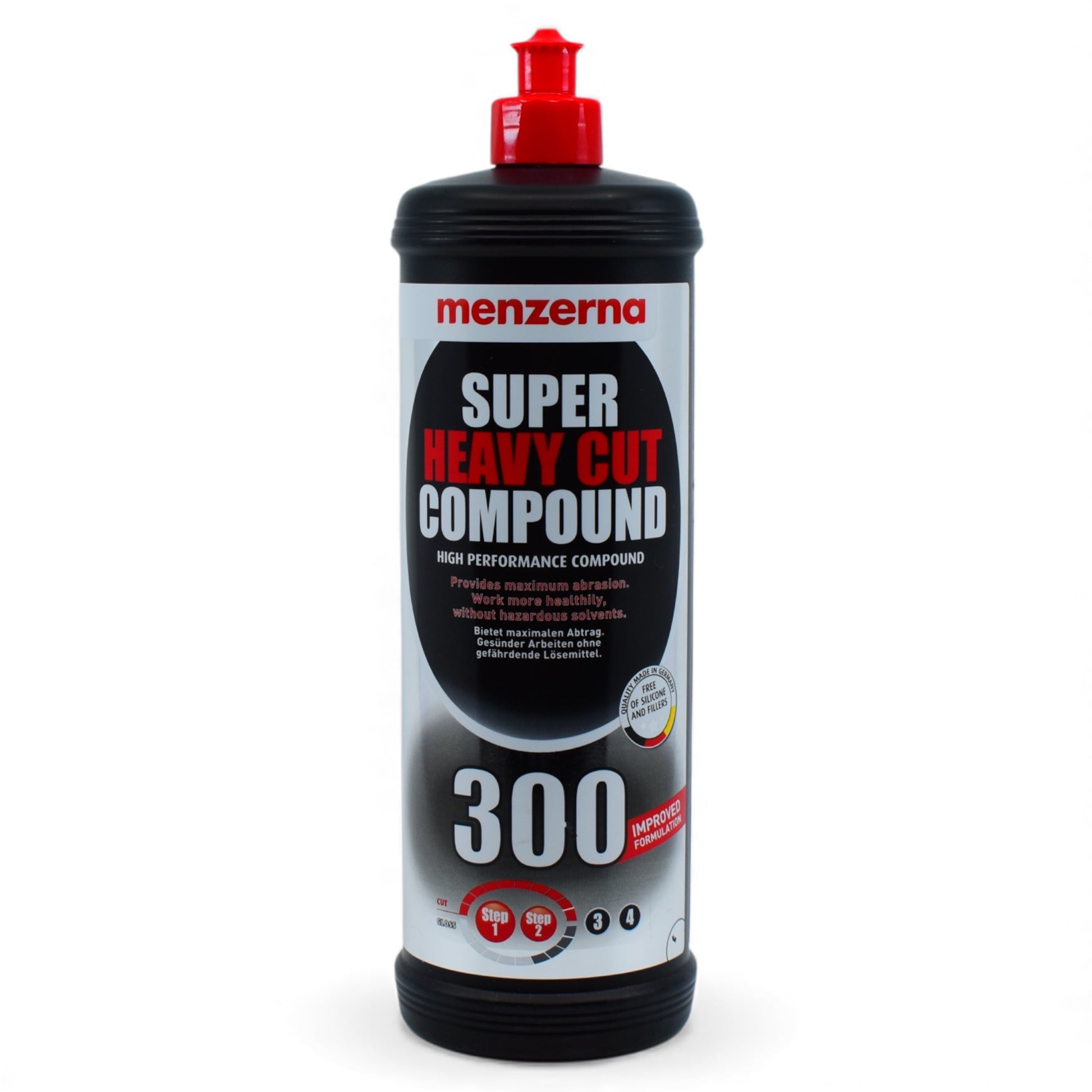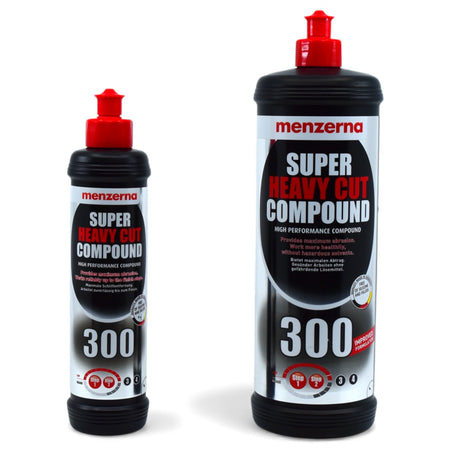 Die Super Heavy Cut Compound Politur sorgt für eine effektive Entfernung von Schliffen und Kratzern. Diese Autopolitur von Menzerna entfernt Schleifspuren in kürzester Zeit. Das Besondere an der Polierpaste ist das teilbare Polierkorn, sodass es eine Hochleistung bis zum perfekten Finish ermöglicht. Die Super Heavy Cut Compound 300 kann sowohl mit einer Rotations- als auch mit einer Exzenter-Poliermaschine angewendet werden. Sie eignet sich perfekt für den professionellen Einsatz in der Fahrzeugaufbereitung und Lackveredelung, . Schleifspuren bis Körnung 1200 sowie alltägliche Nutzungsspuren werden in kürzester Zeit restlos entfernt – dabei bleibt die Oberfläche unversehrt und angrenzende Flächen werden nicht verunreinigt. Modernste Poliertechnologie mit mikrofein aufspaltbarem Schleifkorn sorgt für maximale Performance bis zum glänzenden Endergebnis.