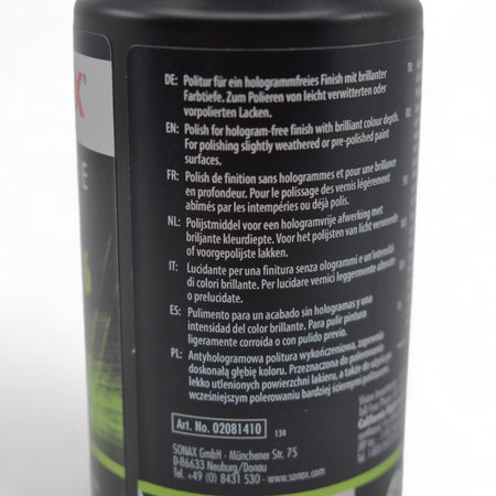 Silikonfreie Politur zum professionellen Polieren von matten und verkratzten Lacken, speziell von kratzbeständigen Klarlacken, mit der Poliermaschine. Ideal als Finishpolitur nach dem Vorpolieren mit Schleifpolituren. Gibt bei sachgerechter Anwendung keine Hologramme oder Schwabbelhiebe auf dem Lack. Entfernt Schleifriefen von Schleifpapier P2500. Silikonfrei und staubarm.